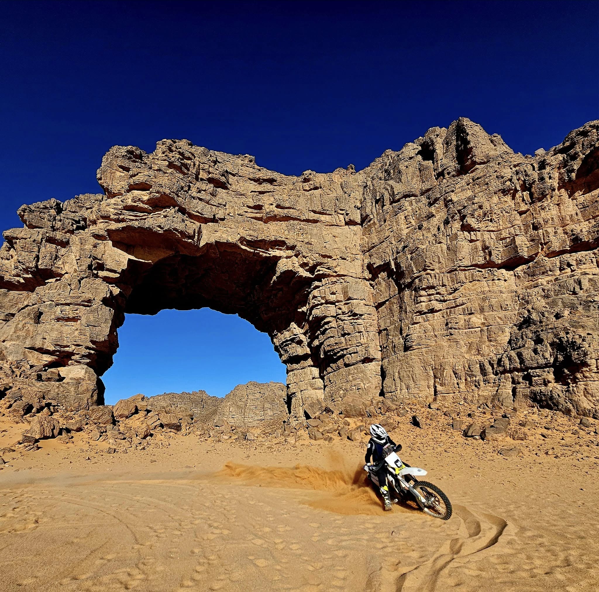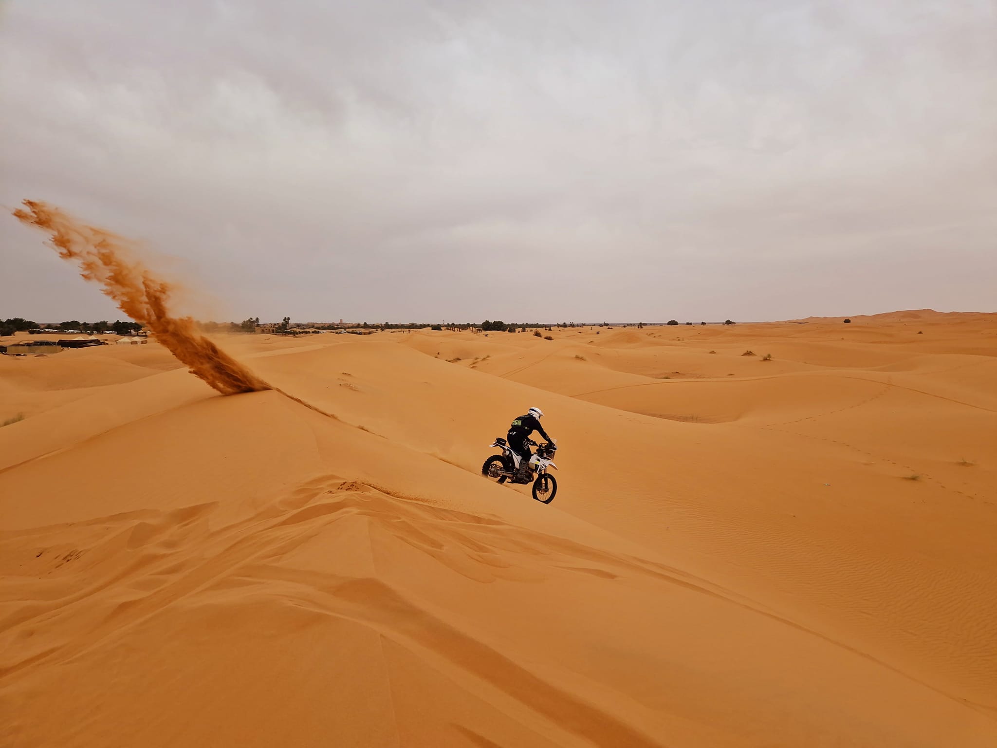 The Merzouga area in Morocco is a world class place to lear rally navigation and desert riding. Erg Chebbi offers large dunes and soft sand, while the Erfoud surroundings provide fast gravel, hamada plateaus and dry riverbeds. This mix makes a perfect classroom for roadbook work, bike control and decision making in changing terrain.